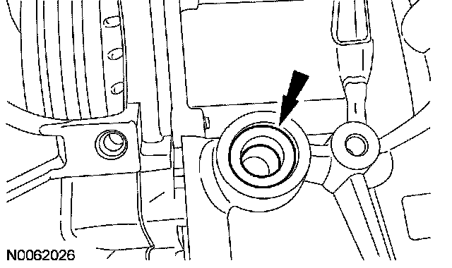 16. Inspect the transaxle case to make sure that the transmission fluid cooler tube seal and backing ring were removed with the transmission fluid cooler tube and are not stuck in the transaxle case. If the transmission fluid cooler tube seal or backing ring are stuck in the transaxle case, remove the seal and backing ring.