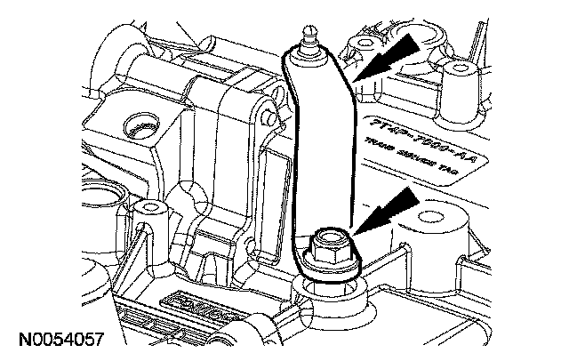 Remove the nut, rotate the transmission fluid filler tube counterclockwise 90 degrees and remove the transmission fluid filler tube.