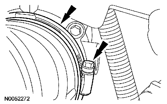 16. Position the transmission fluid cooler tube in place and install the bolt.