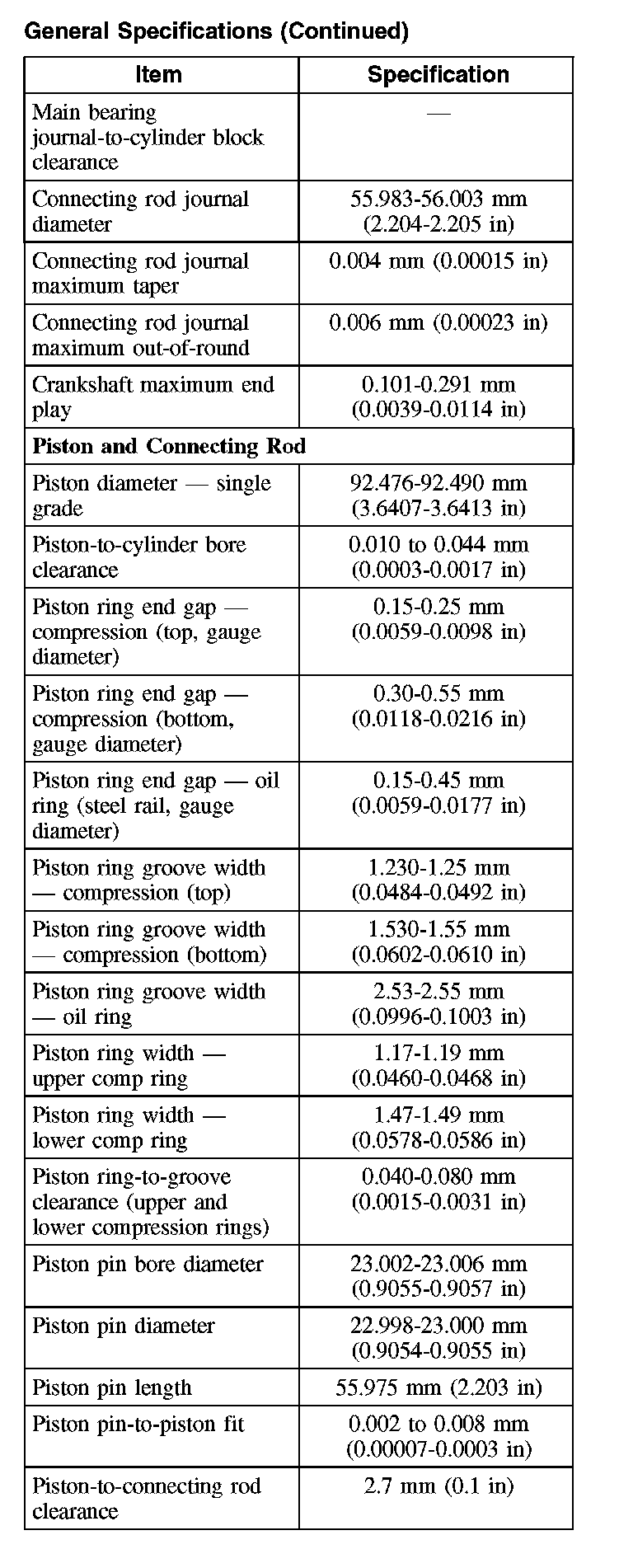 General Specifications