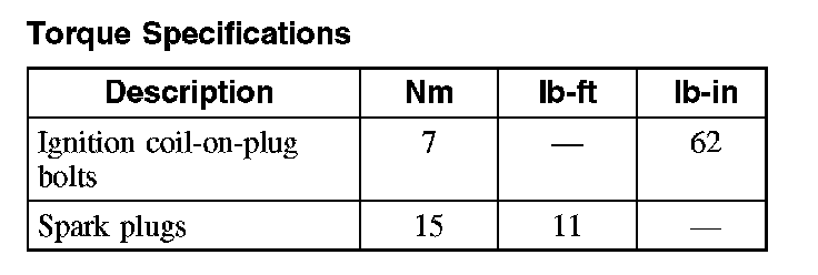 Torque Specifications: