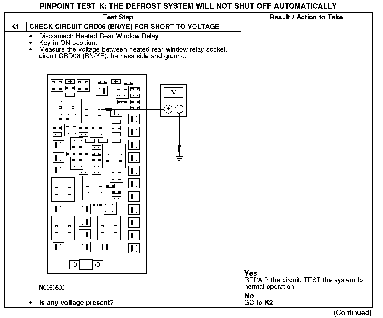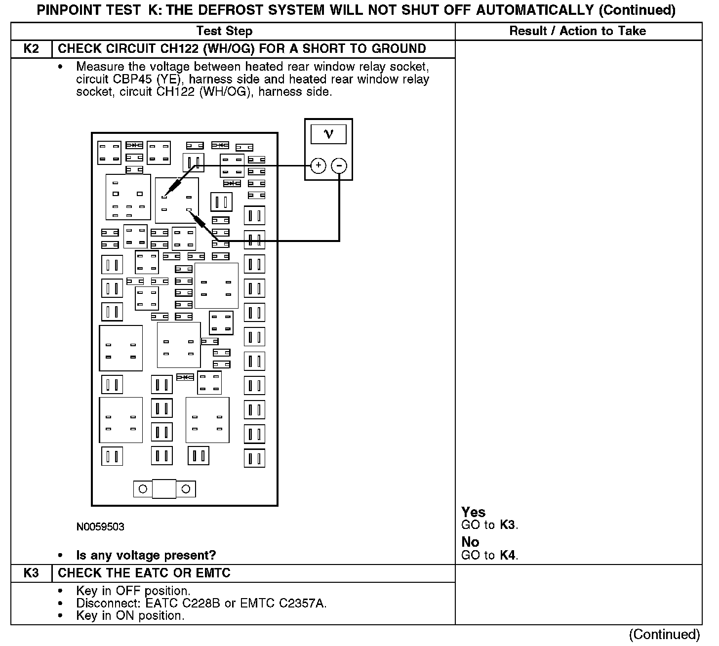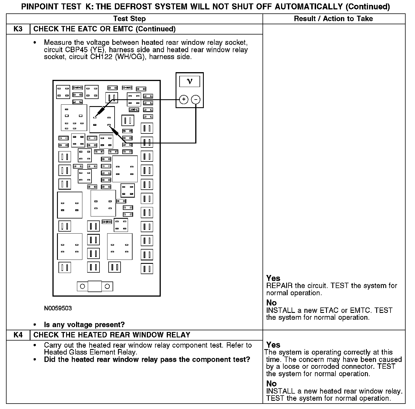 PINPOINT TEST K: THE DEFROST SYSTEM WILL NOT SHUT OFF AUTOMATICALLYK1: