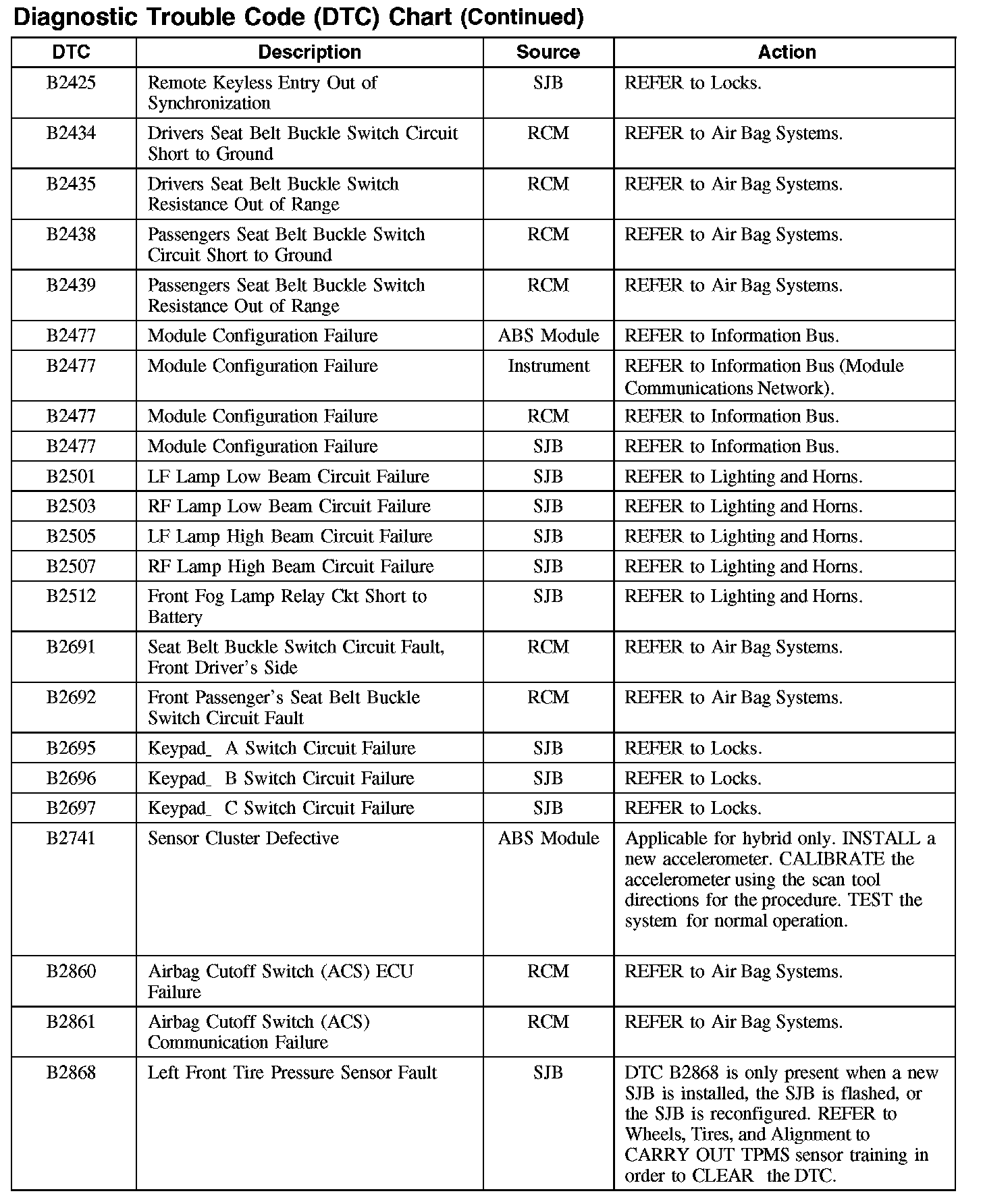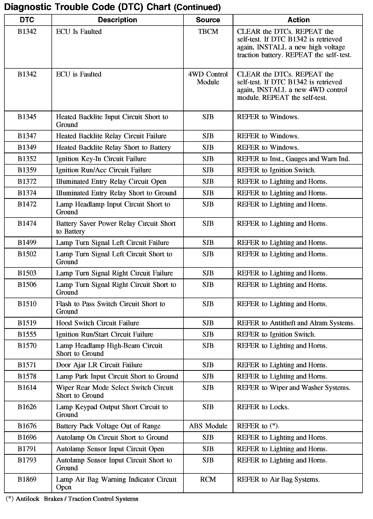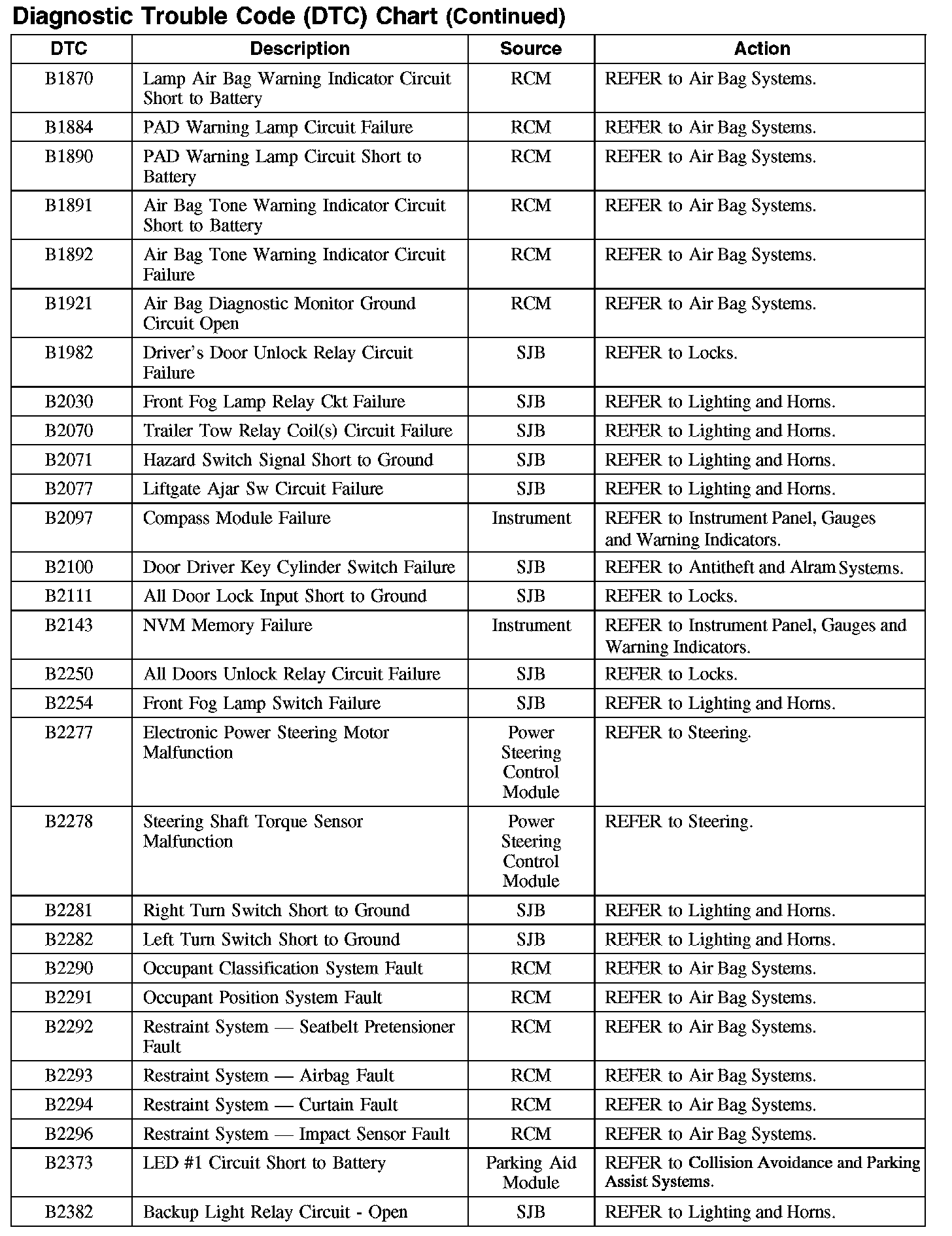 DIAGNOSTIC TROUBLE CODE (DTC) CHARTB1010-B1244: