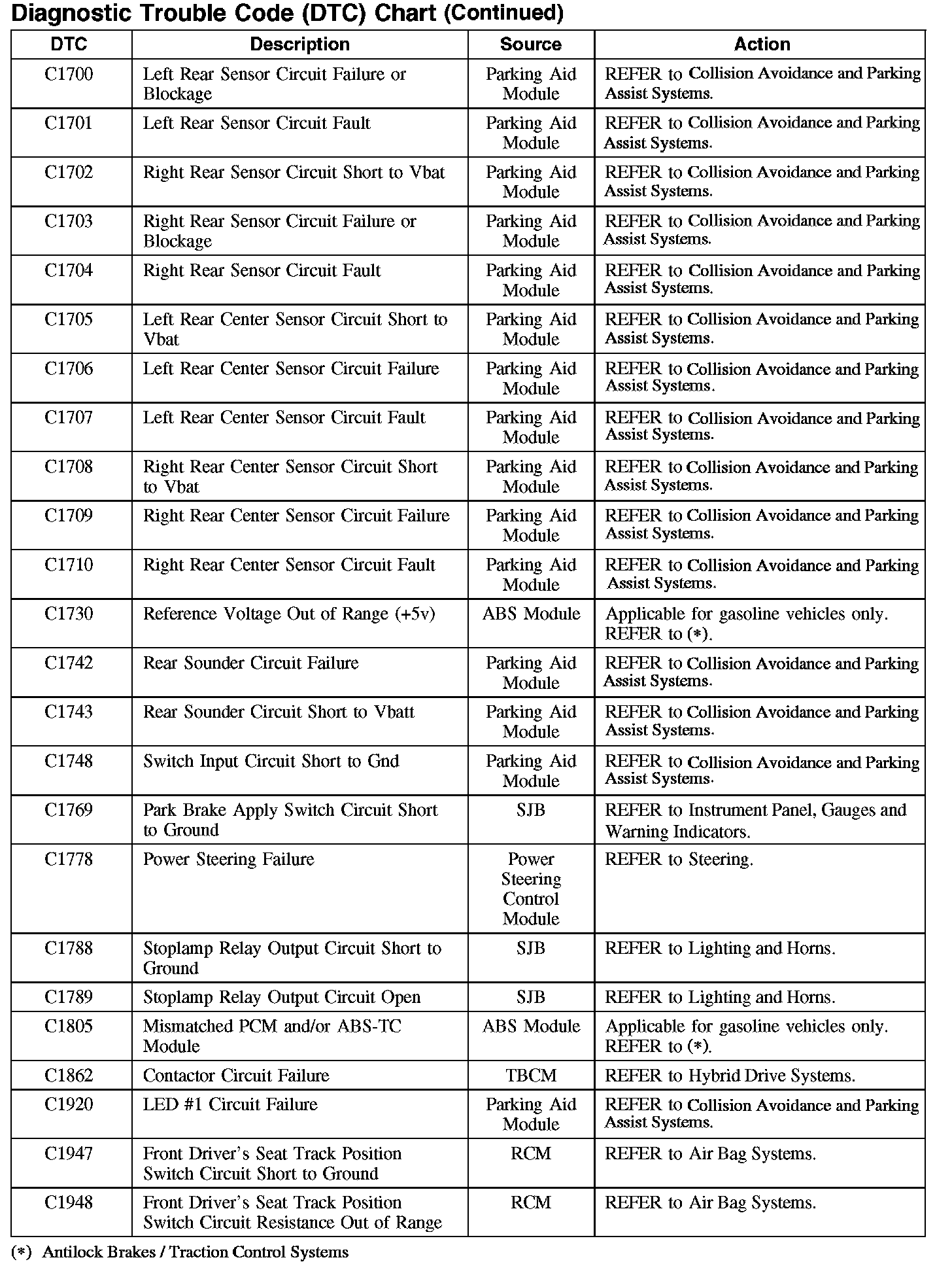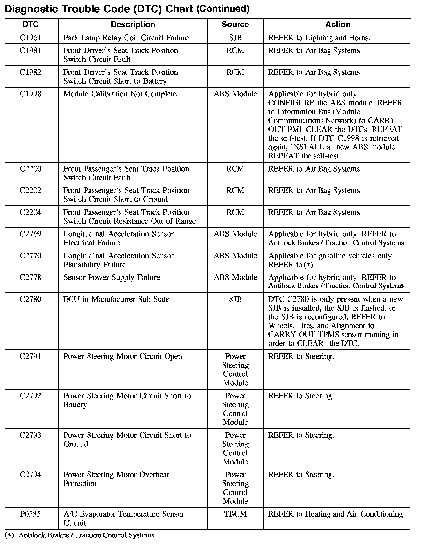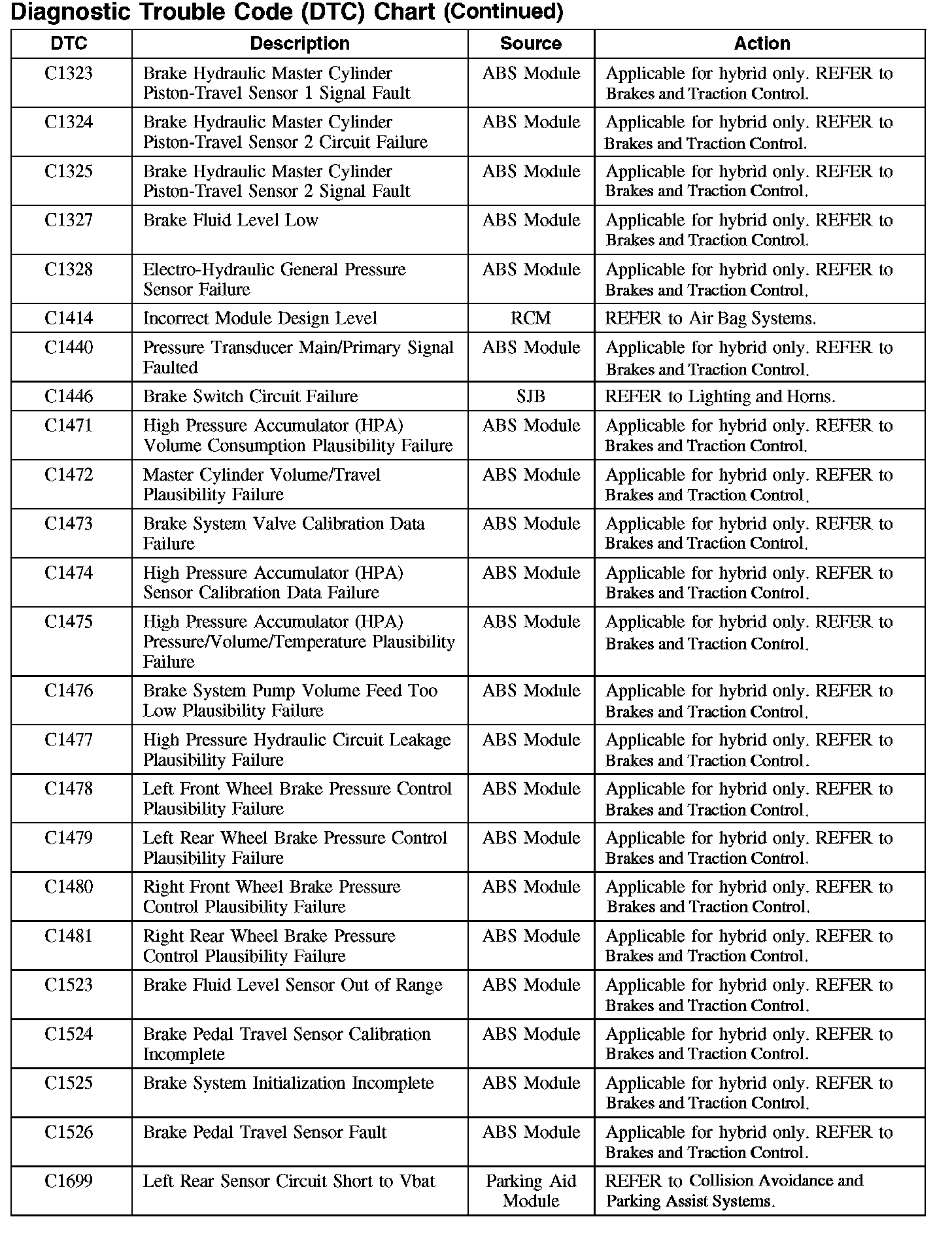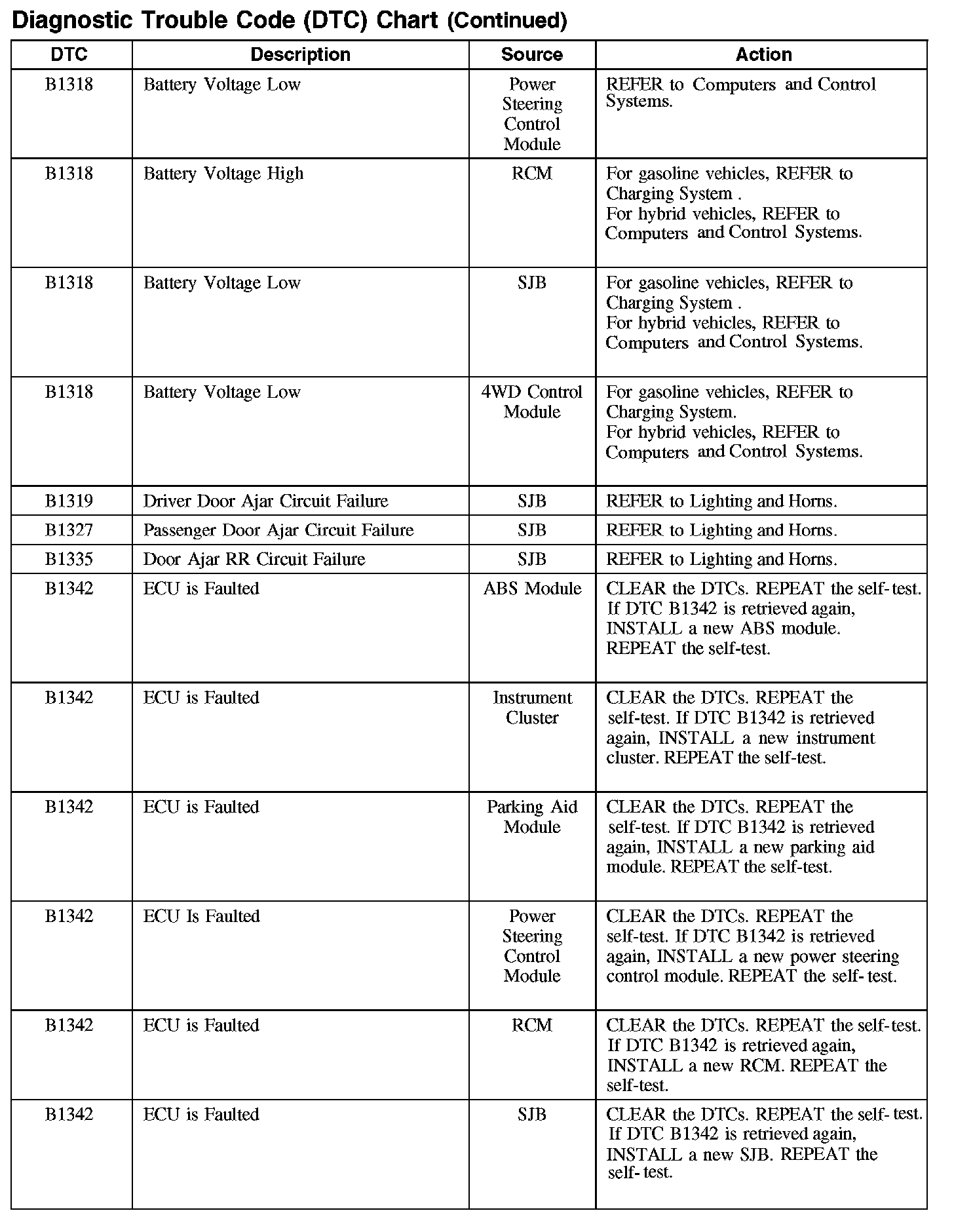 DIAGNOSTIC TROUBLE CODE (DTC) CHARTB1010-B1244: