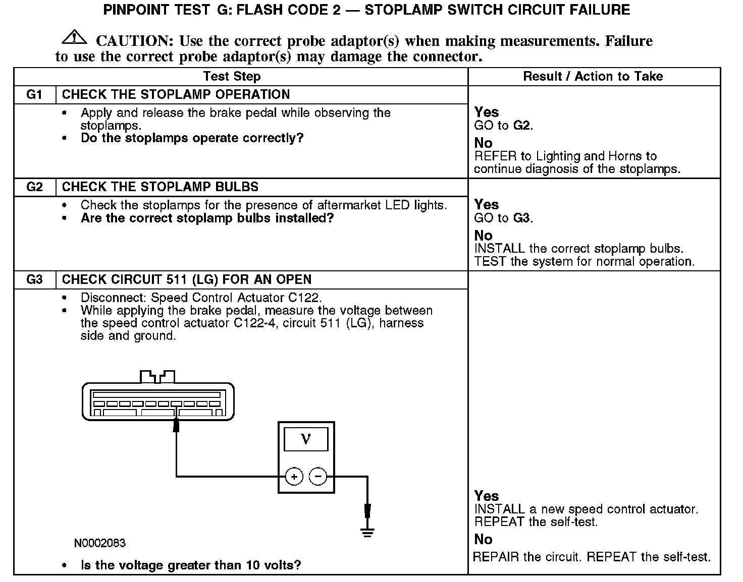 Test G: Flash Code 2 - Stoplamp Switch Circuit Failure