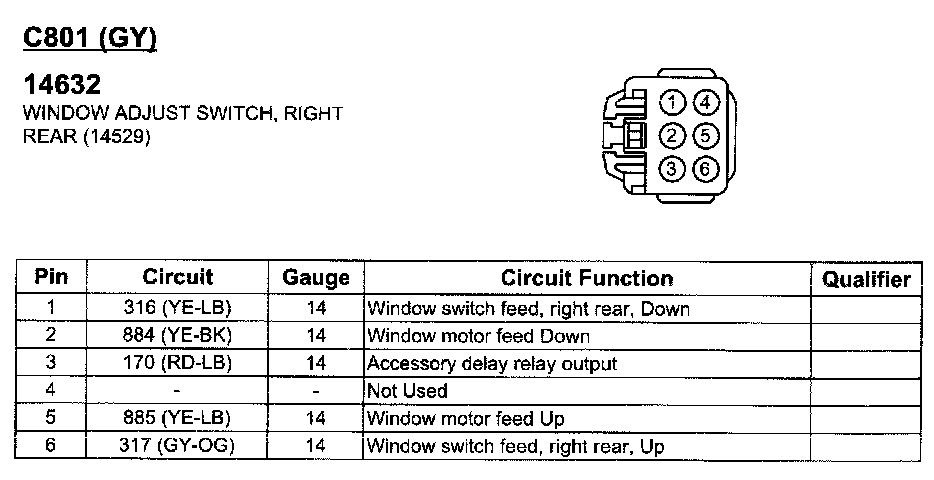 Window Adjust Switch, Right Rear