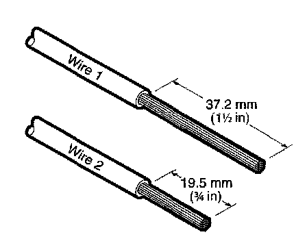2. Strip 1/4" (6.35mm) of insulation from each wire end, taking care not to nick or cut wire strands.