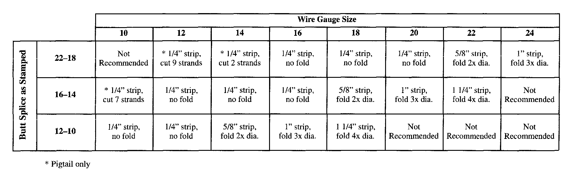 Recommended splicing method - Crimp (For 10-22 AWG Diameter Wire to Like Wire Diameter)