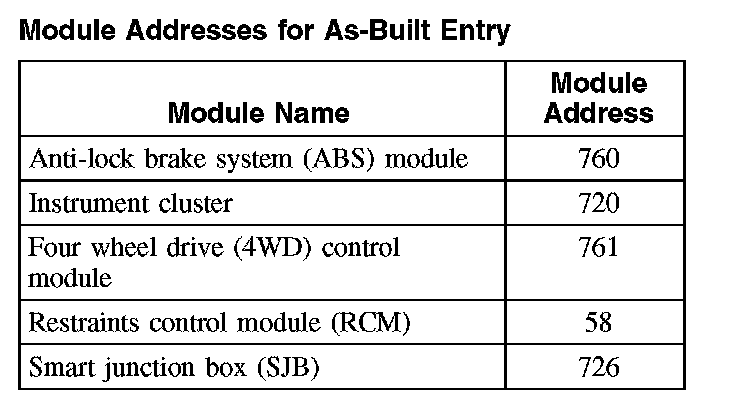 NOTE: It is not necessary to obtain As-Built data unless directed to do so by the scan tool. This data may be accessed from the technician service publication website.