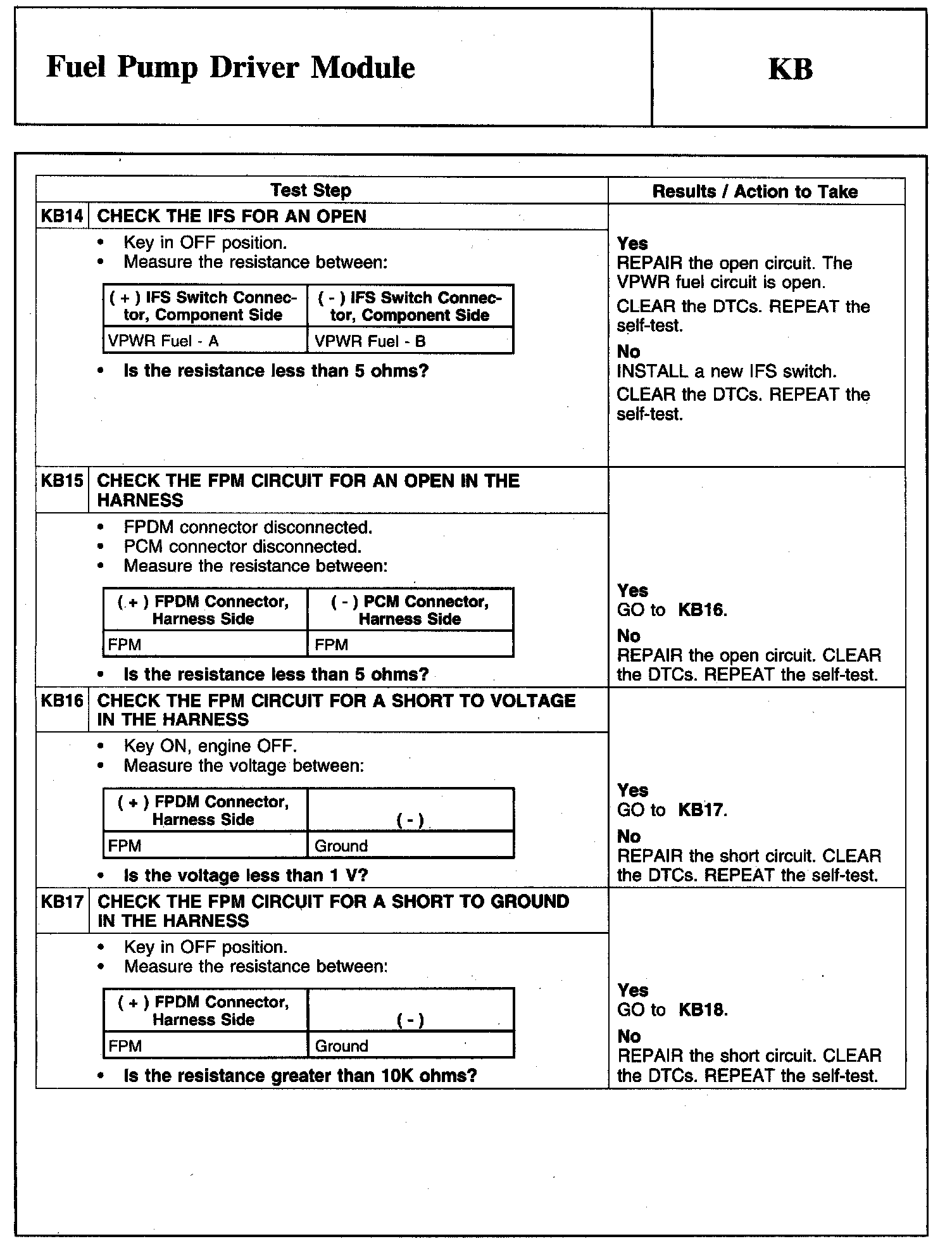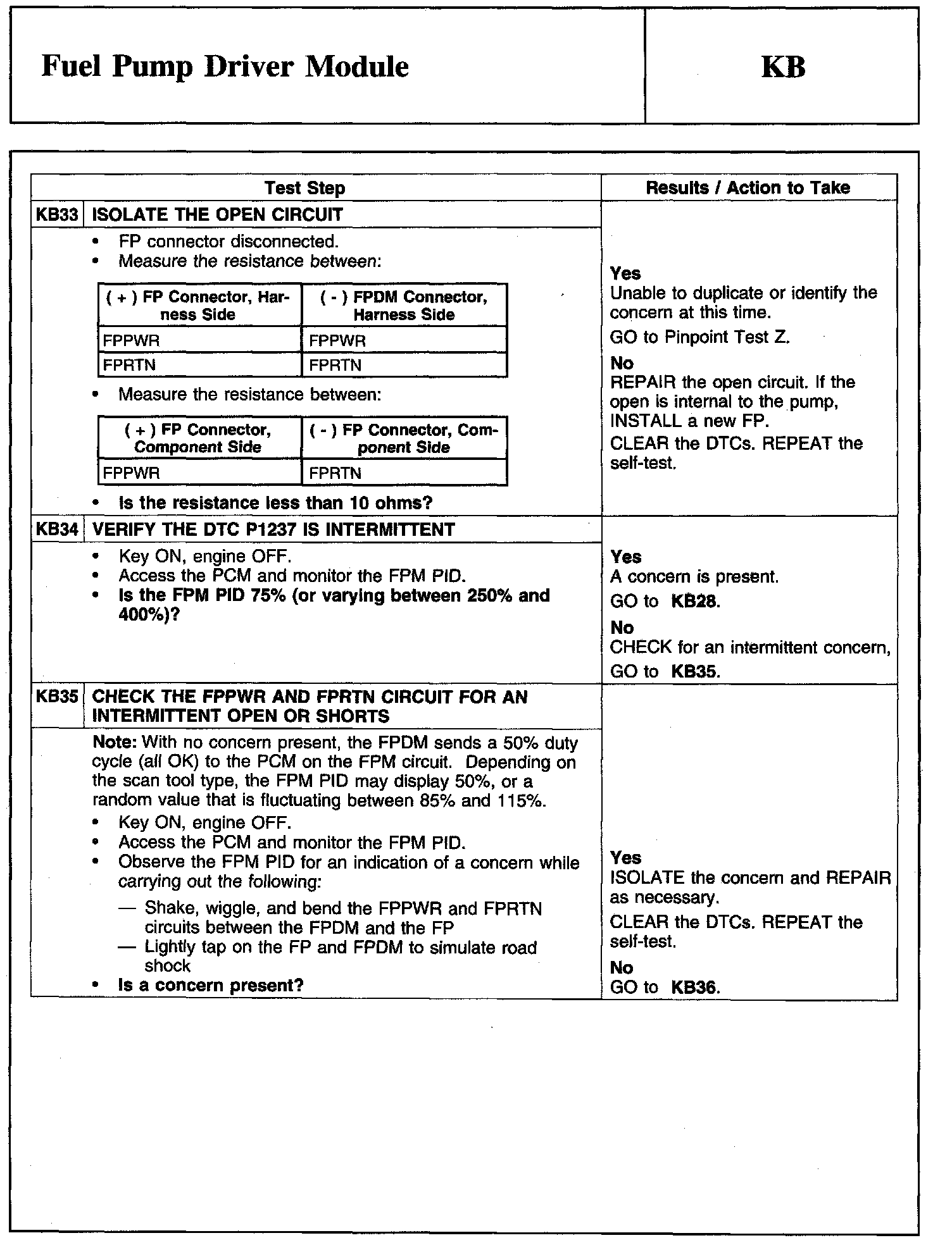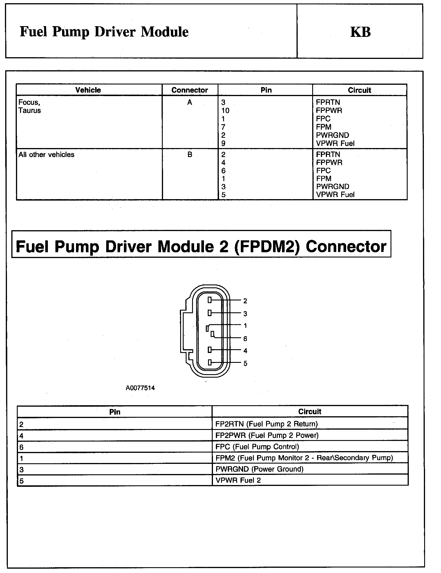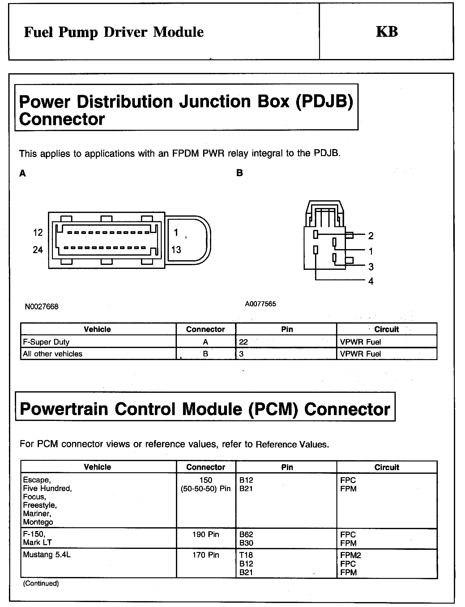 Home >> Ford >> 2007 >> Escape 2WD L4-2.3L VIN Z >> Repair and Diagnosis >> Powertrain Management >> Computers and Control Systems >> Testing and Inspection >> Pinpoint Tests >> Tests KB: Fuel Pump Driver Module