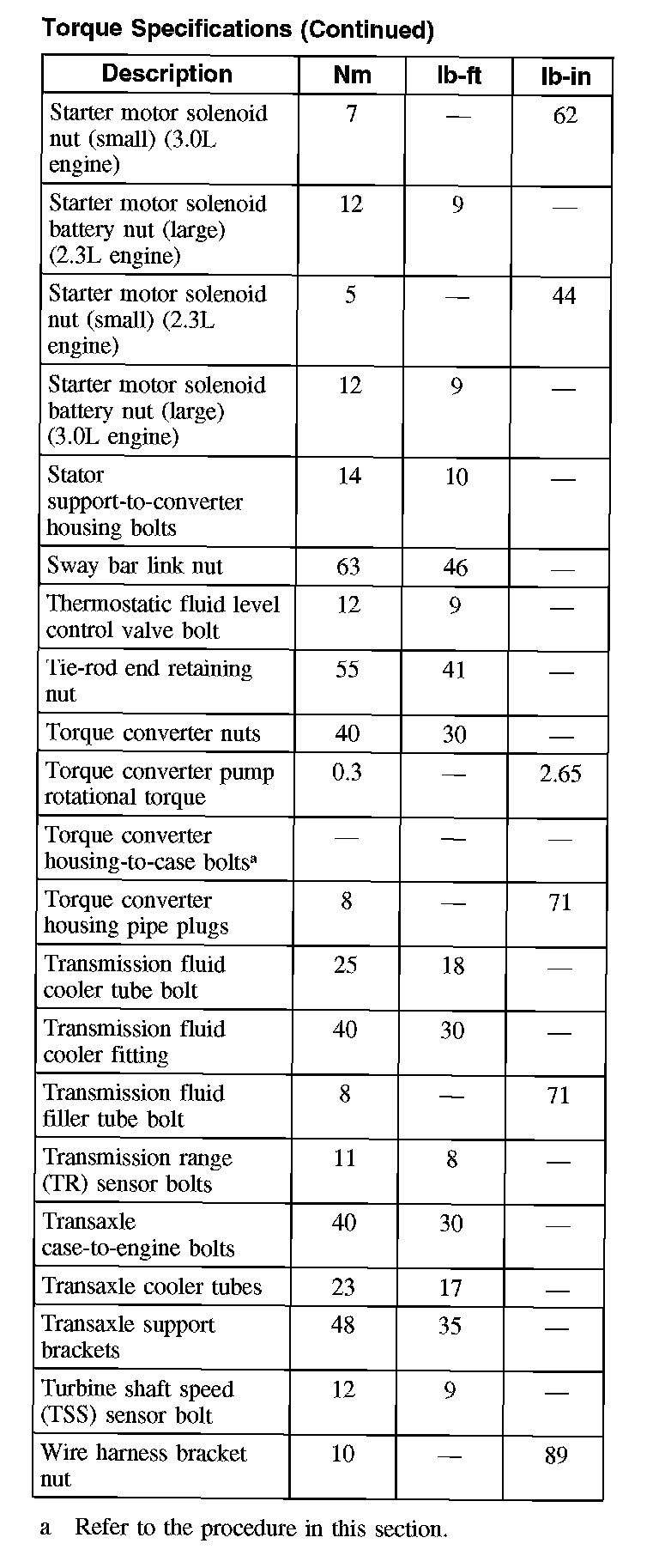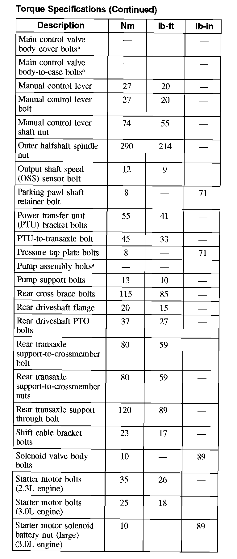 Torque Specifications (Continued):