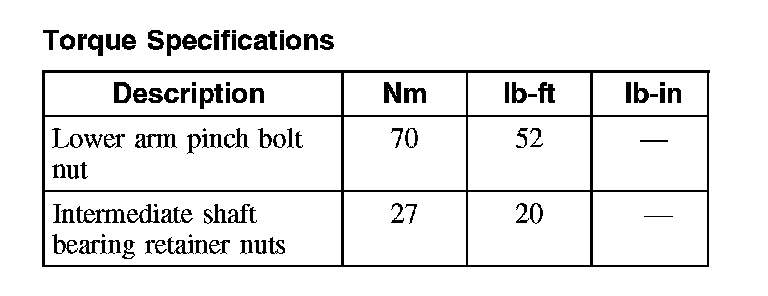 Torque Specifications: