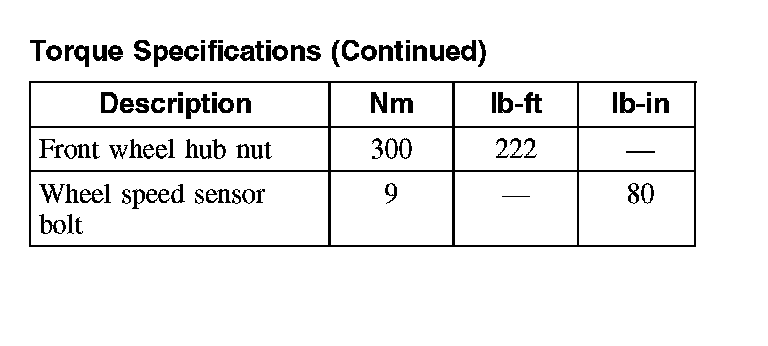Torque Specifications (Continued):