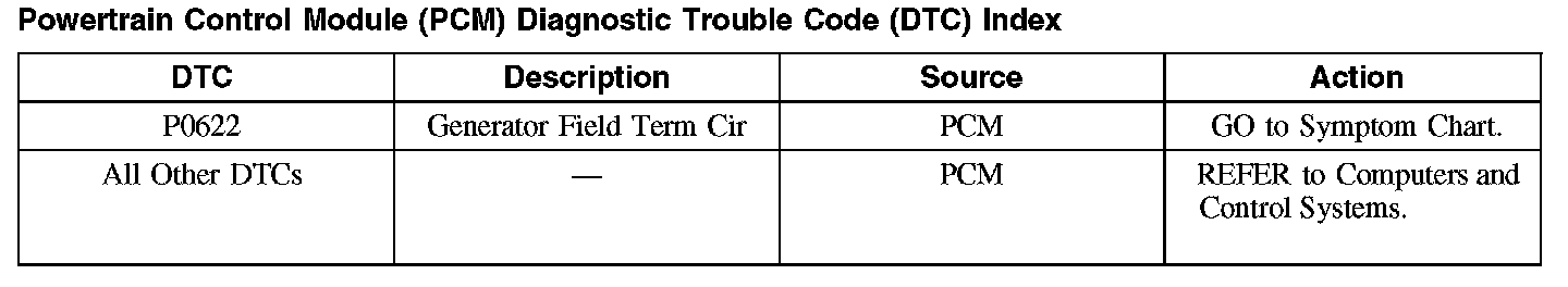 Powertrain Control Module (PCM) Diagnostic Trouble Code (DTC) Index