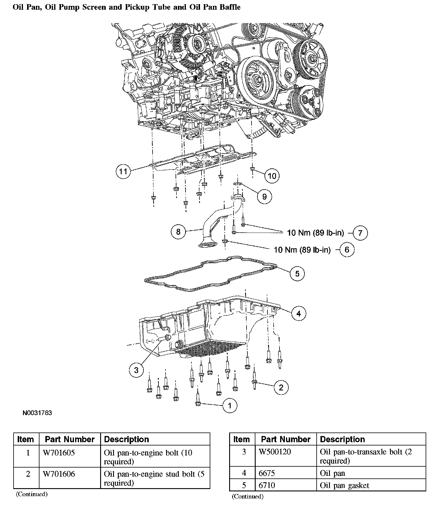 Oil Pan, Oil Pump Screen and Pickup Tube and Oil Pan Baffle (Part 2):