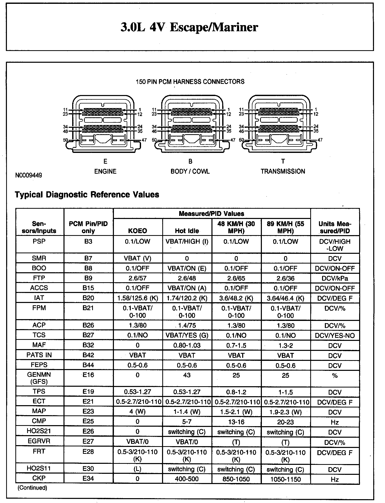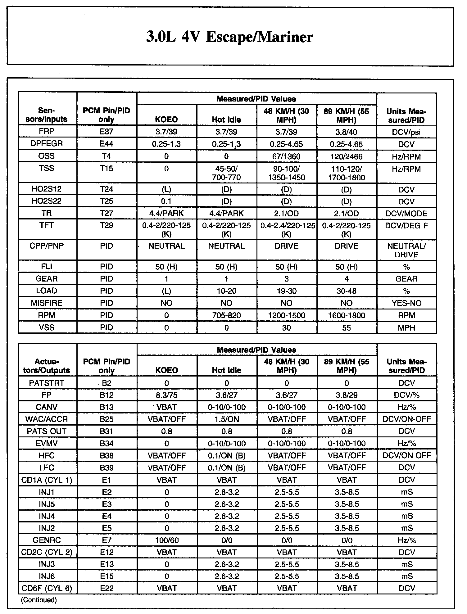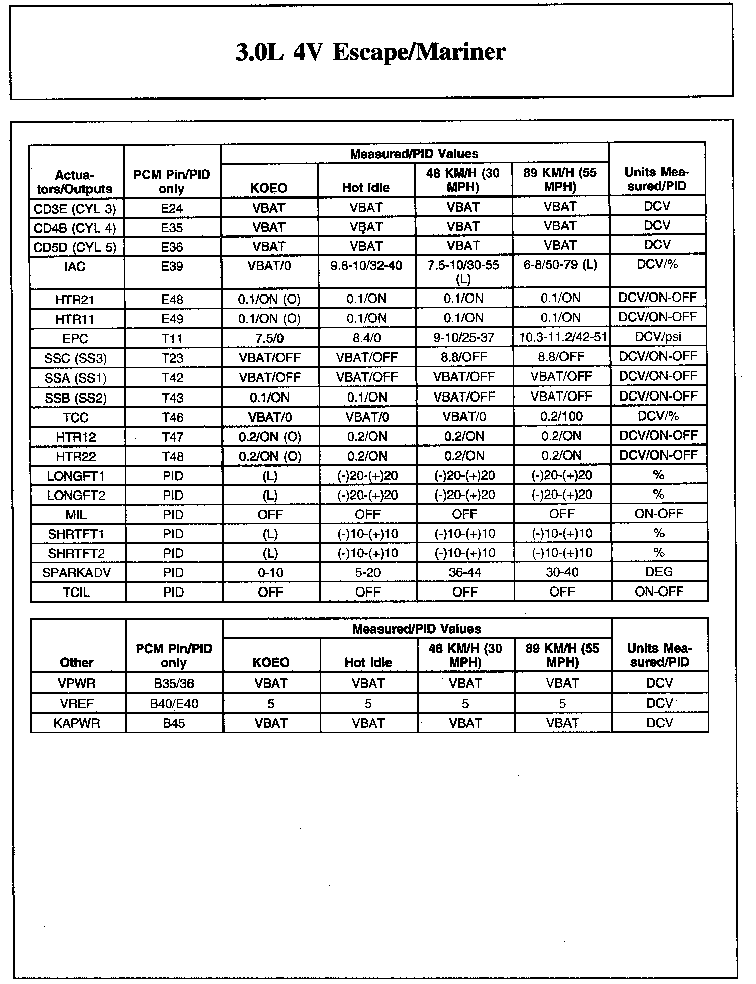 Home >> Ford >> 2007 >> Escape 2WD V6-3.0L VIN 1 >> Repair and Diagnosis >> Powertrain Management >> Computers and Control Systems >> Testing and Inspection >> Scan Tool Testing and Procedures >> Typical Diagnostic Reference Values