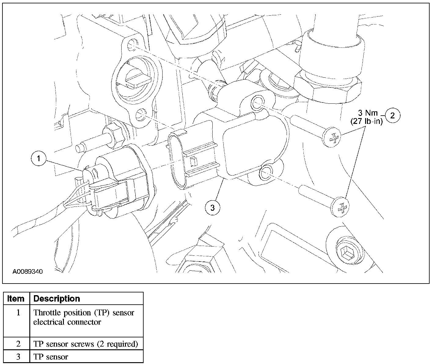 - To install, tighten to 3 Nm (27 lb-in).