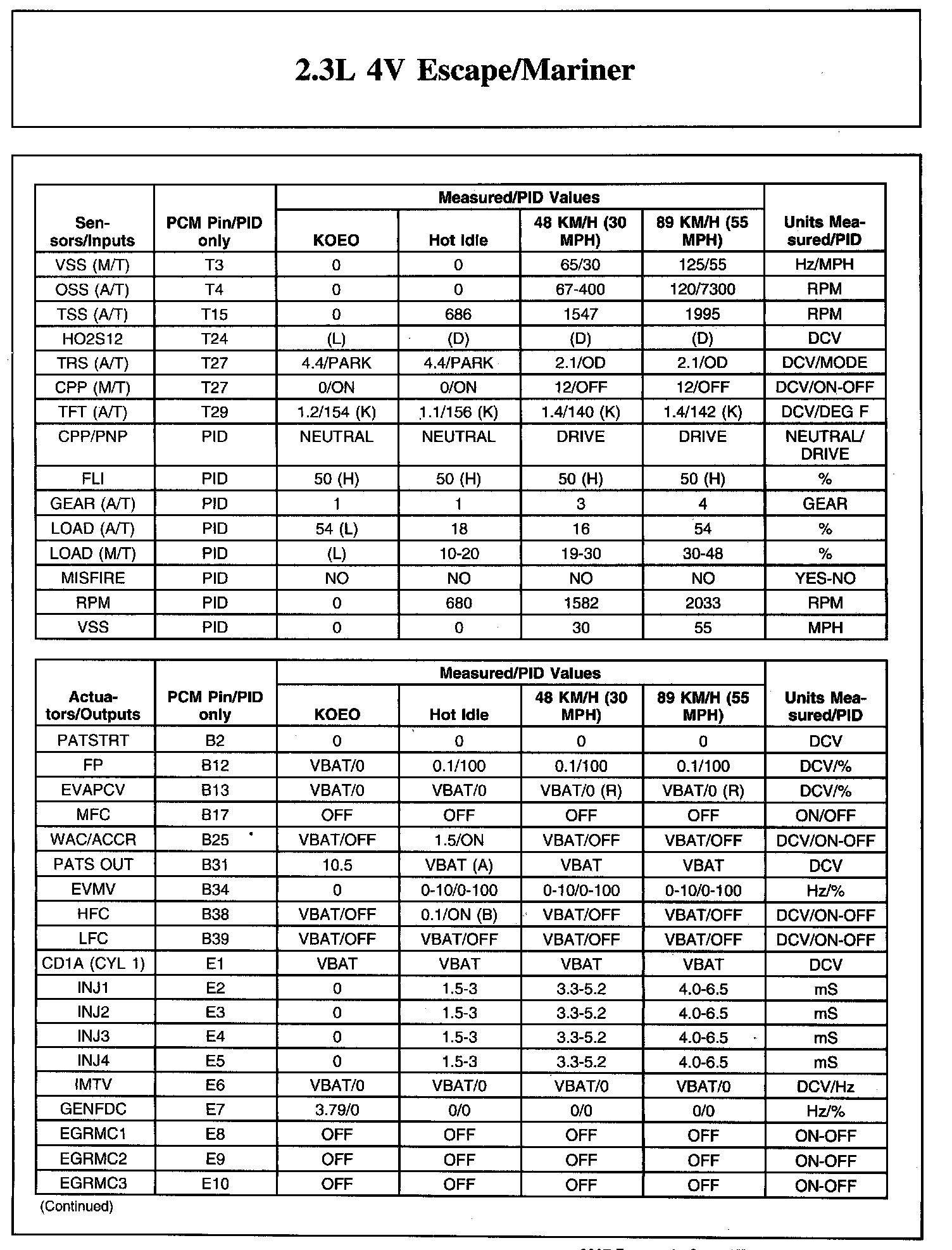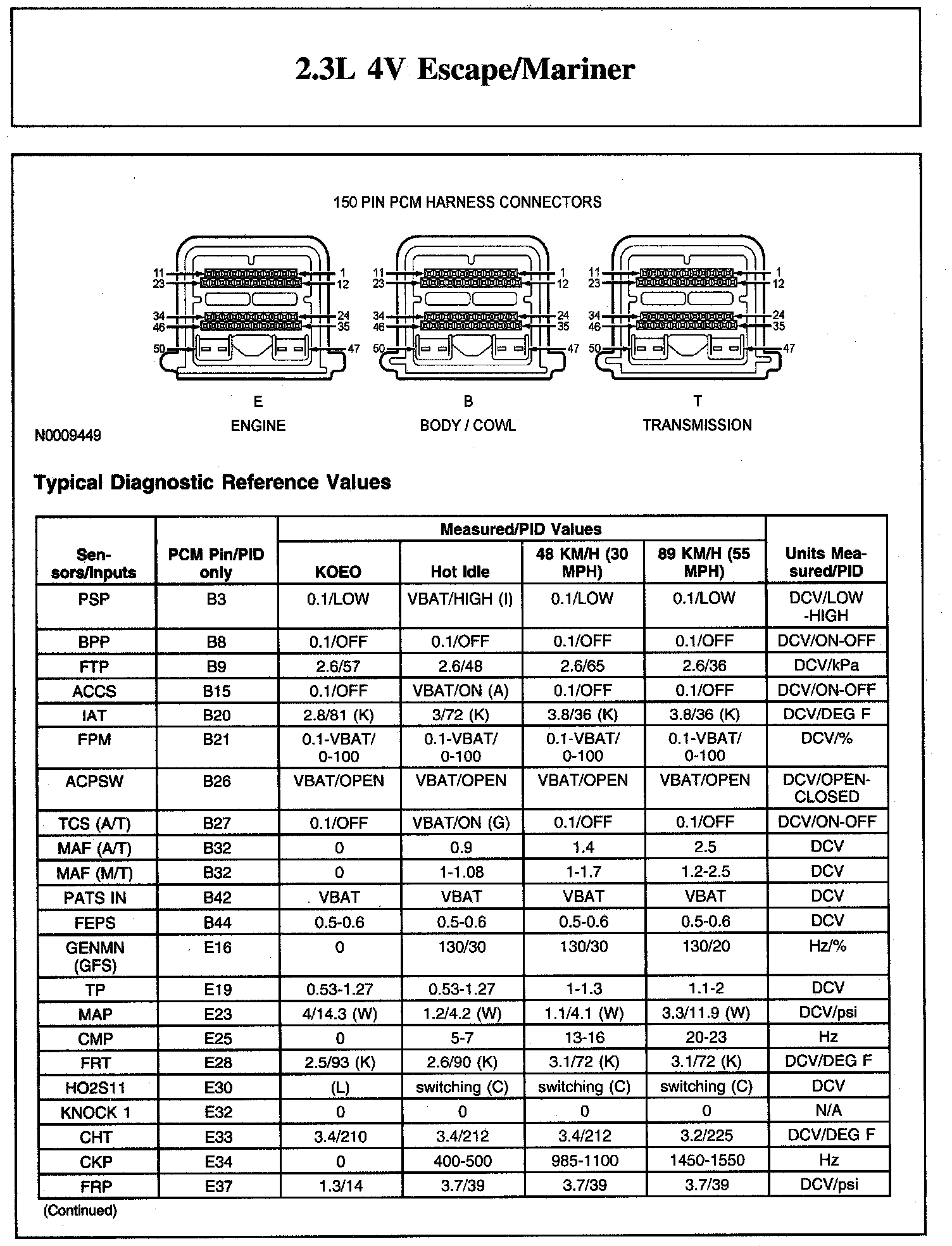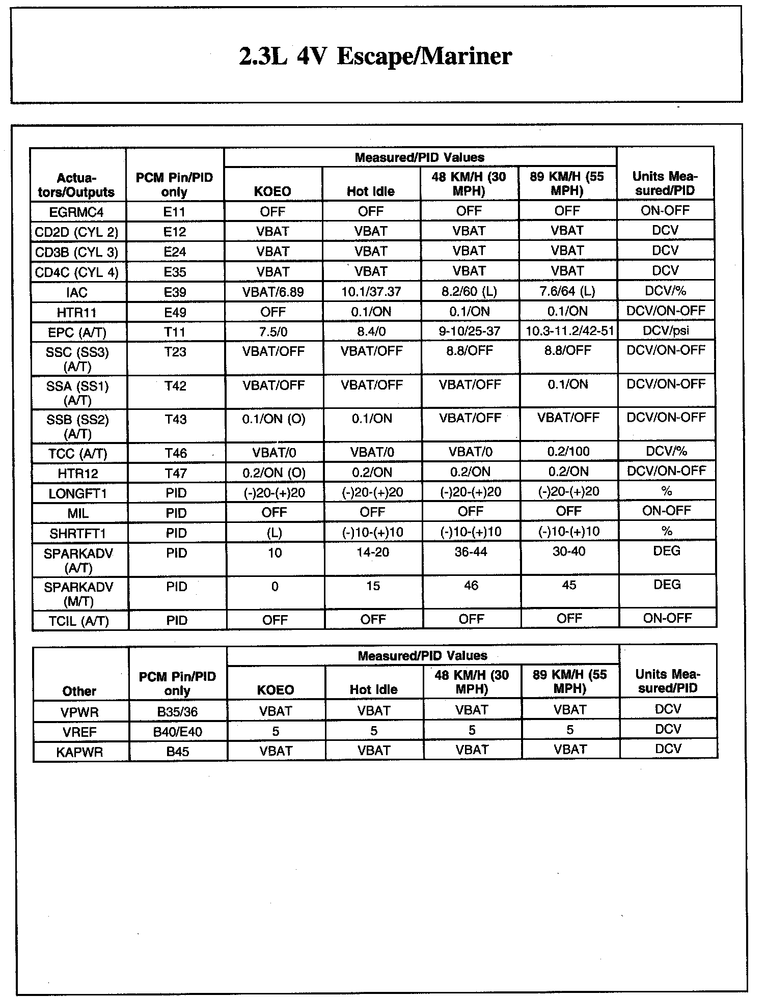 Home >> Ford >> 2007 >> Escape 4WD L4-2.3L VIN Z >> Repair and Diagnosis >> Powertrain Management >> Computers and Control Systems >> Testing and Inspection >> Scan Tool Testing and Procedures >> Typical Diagnostic Reference Values
