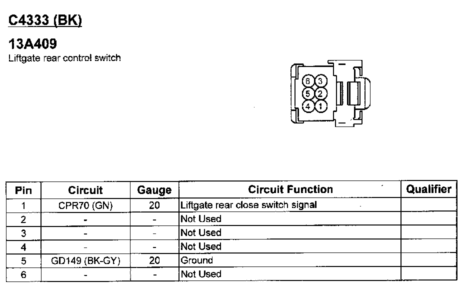 Liftgate Rear Control Switch