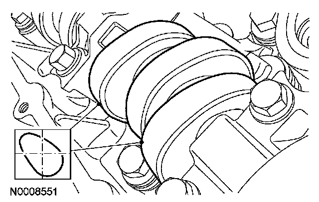^ Lubricate the camshaft bearing caps with clean engine oil.
