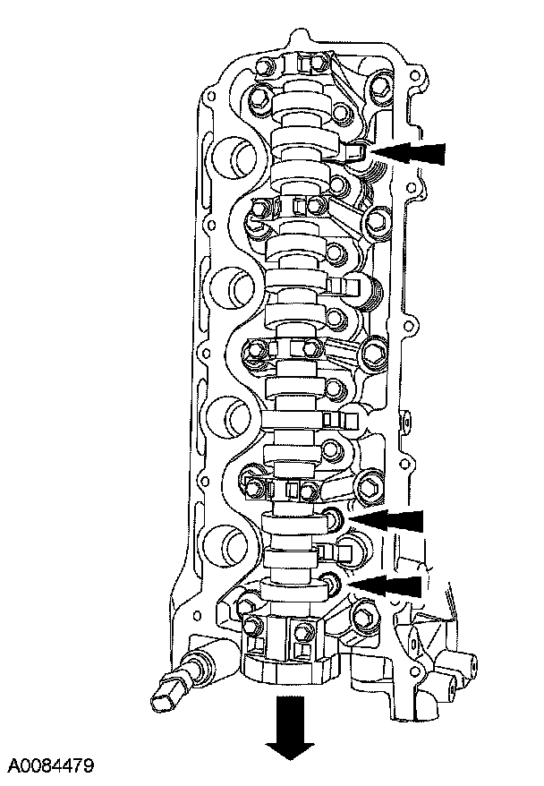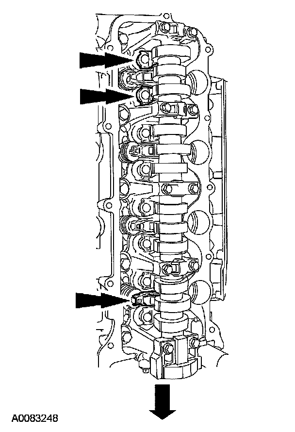 NOTE: The camshaft bearing caps must be installed in their original locations. Record camshaft bearing cap locations.