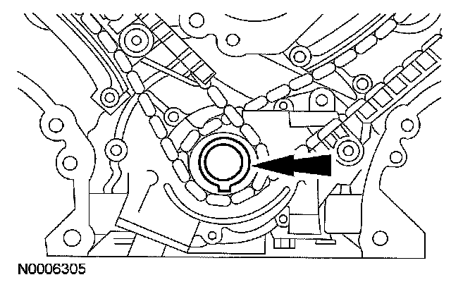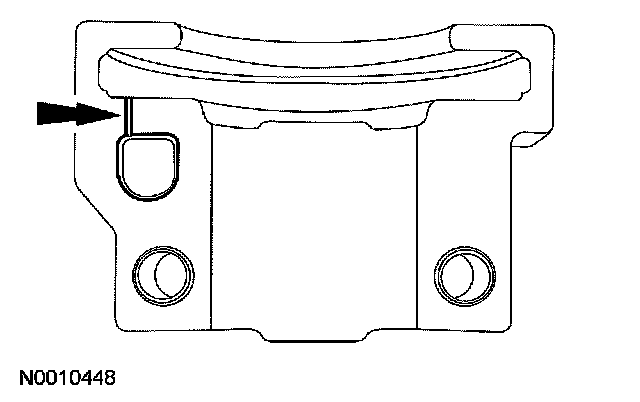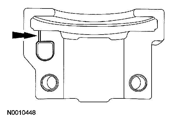 ^ The camshaft front thrust bearing cap contains an oil metering groove. Make sure the groove is free of foreign material.