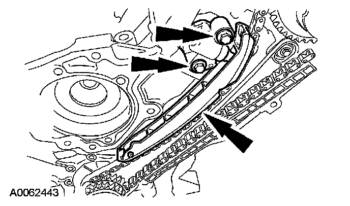 Remove the bolts, the LH timing chain tensioner and tensioner arm.