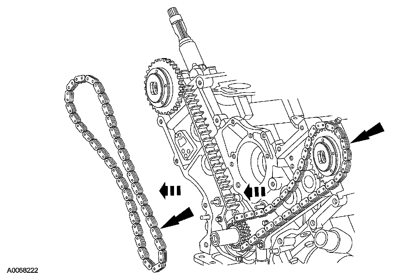 ^ Remove the RH timing chain from the camshaft sprocket.