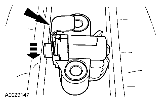 7. Install a retaining clip on the tensioner to hold the plunger in during installation.
