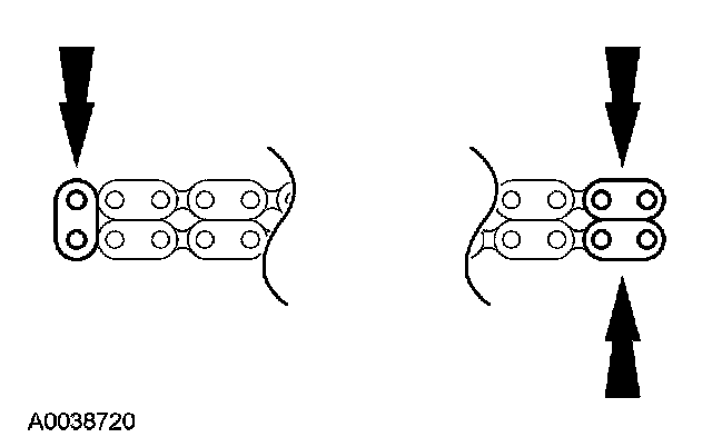9. If the copper links are not visible, mark 2 links on one end and 1 link on the other end, and use as timing marks.