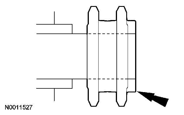 CAUTION: Prior to installation, inspect the tensioner-sealing bead for seal integrity. If cracks, tears, separation from the tensioner body or permanent compression of the seal bead is observed, install a new tensioner.