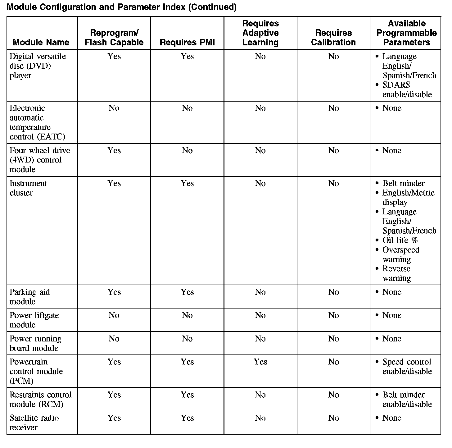 Programmable parameters are customer preference items that may be modified by the dealer via scan tool or in some cases modified by the customer following a procedure listed in the vehicle Owner's Literature. While many configuration options may exist for a module, only a few of these options are programmable parameters.