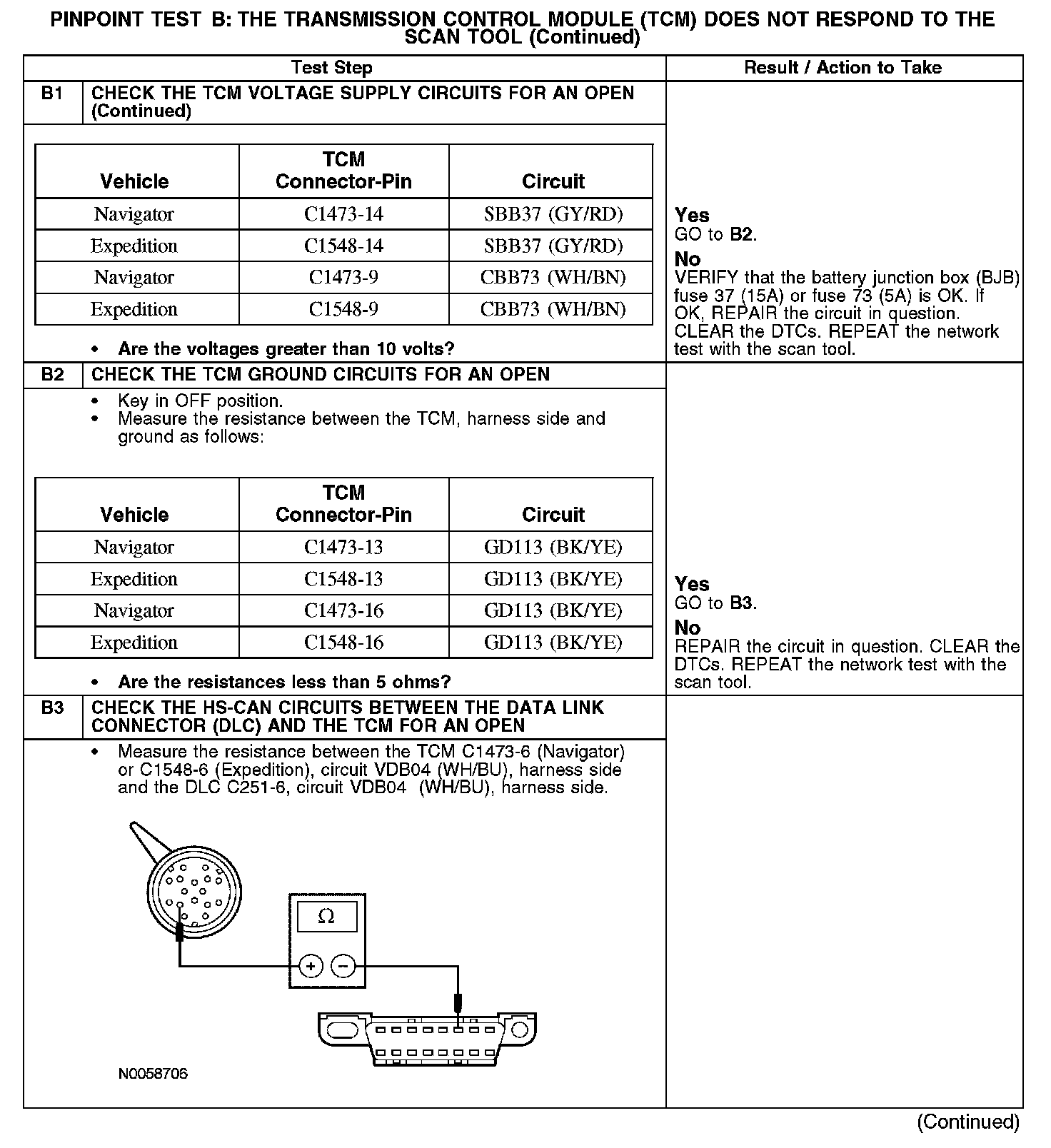 PINPOINT TEST B: THE TRANSMISSION CONTROL MODULE (TCM) DOES NOT RESPOND TO THE SCAN TOOLB1: