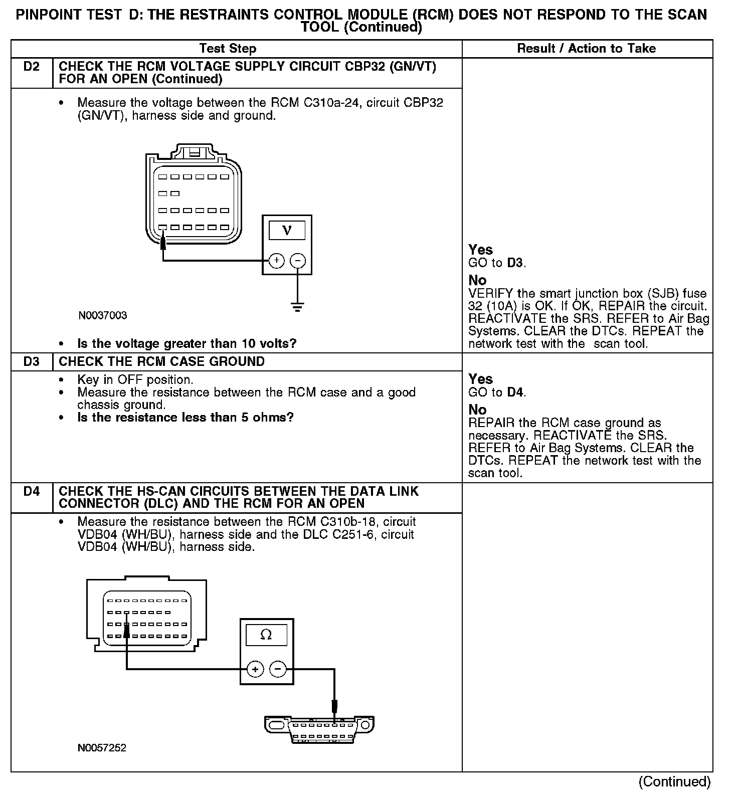 PINPOINT TEST D: THE RESTRAINTS CONTROL MODULE (RCM) DOES NOT RESPOND TO THE SCAN TOOLD1-D2:
