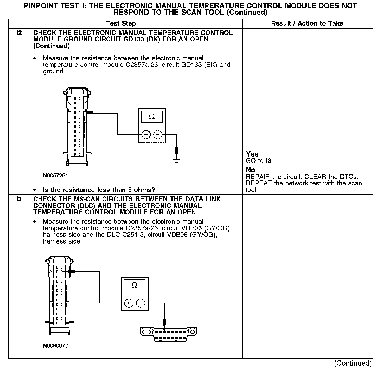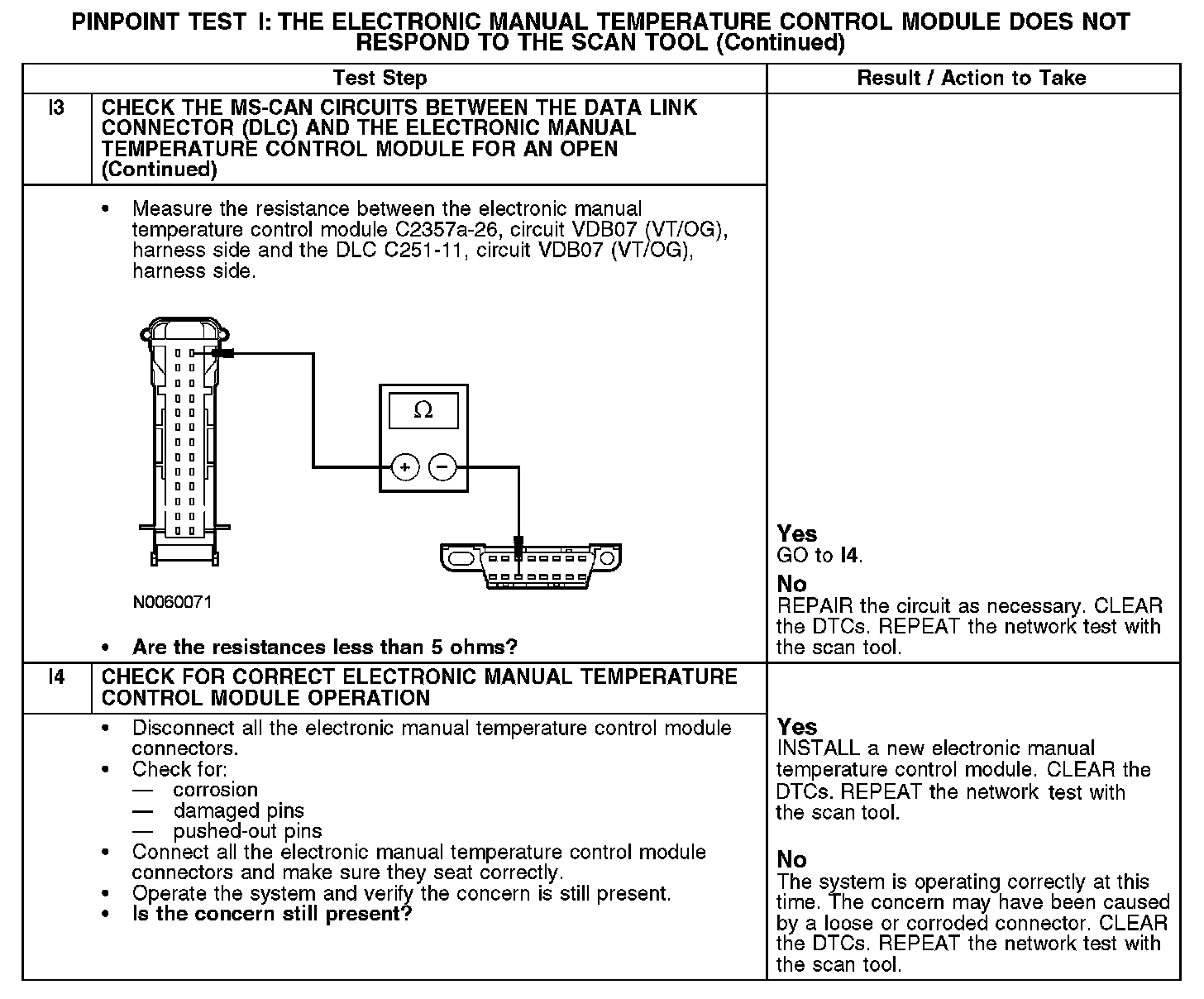 PINPOINT TEST I: THE ELECTRONIC MANUAL TEMPERATURE CONTROL MODULE DOES NOT RESPOND TO THE SCAN TOOLI1-I2: