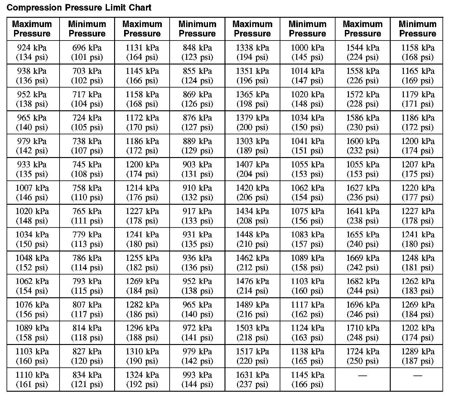Compression Pressure Limit Chart