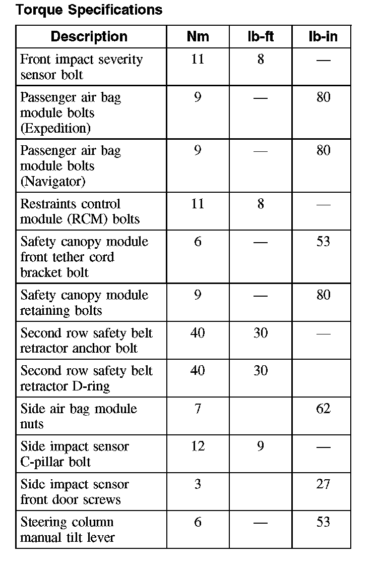 Torque Specifications: