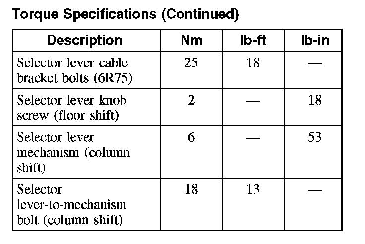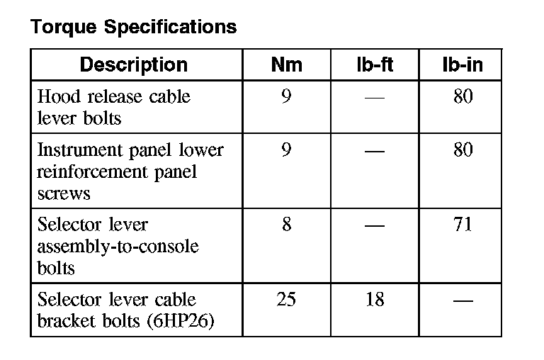 Torque Specifications: