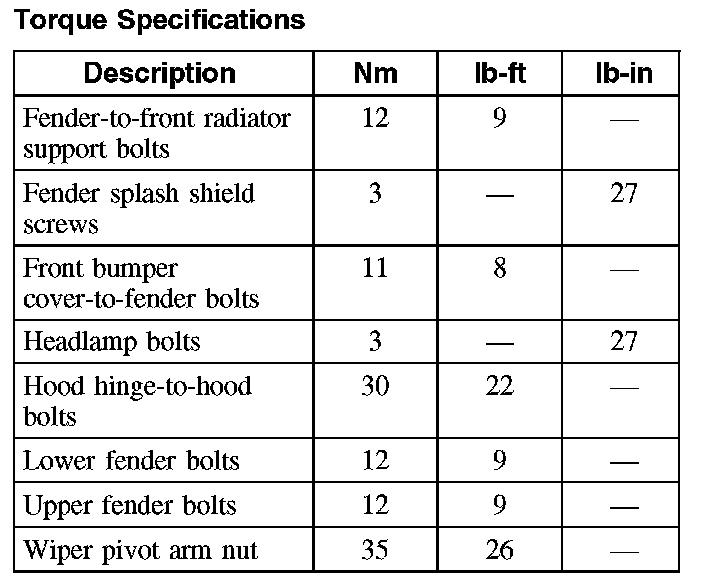 Torque Specifications: