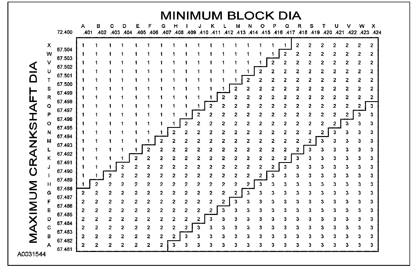 Main Bearing Size Codes