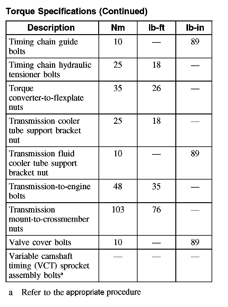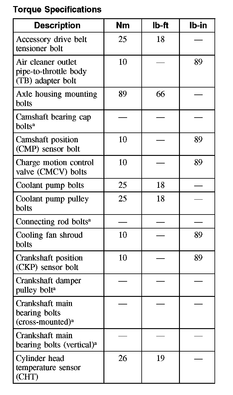 Torque Specifications (Part 1):
