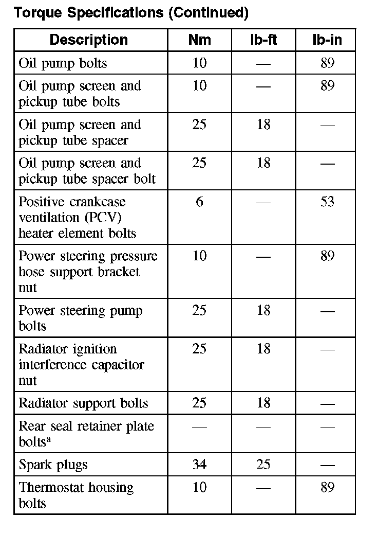 Torque Specifications (Part 2):
