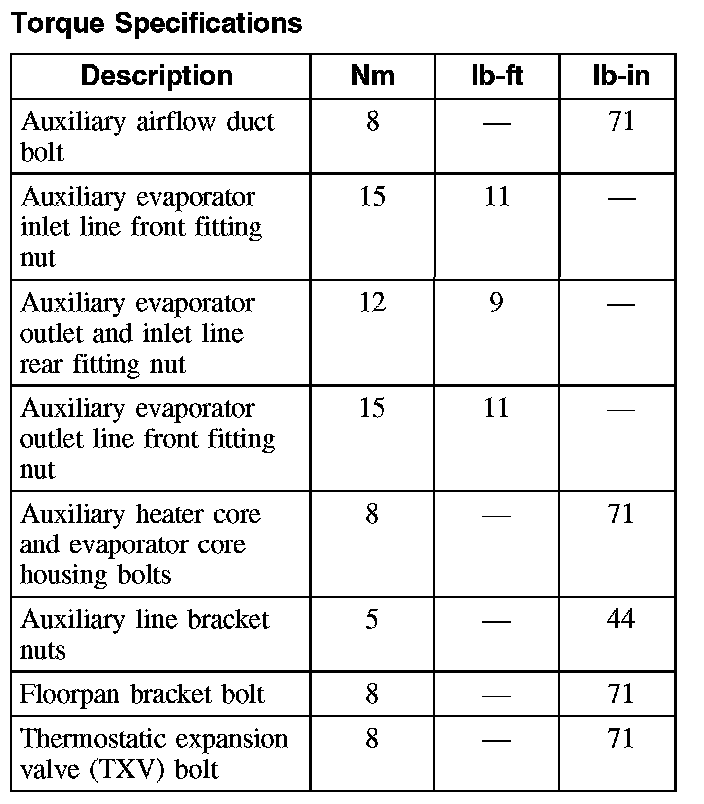 Torque Specifications: