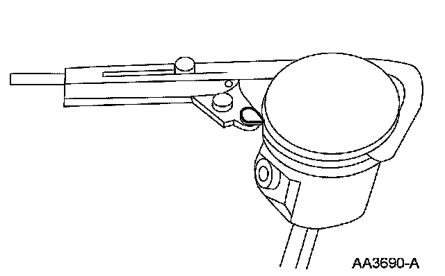 1. WARNING: Cover the end of the pin bore with a hand or shop rag when removing the retainer ring, since it has a tendency to spring out. Wear eye protection.