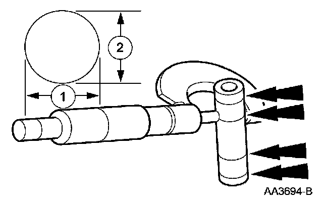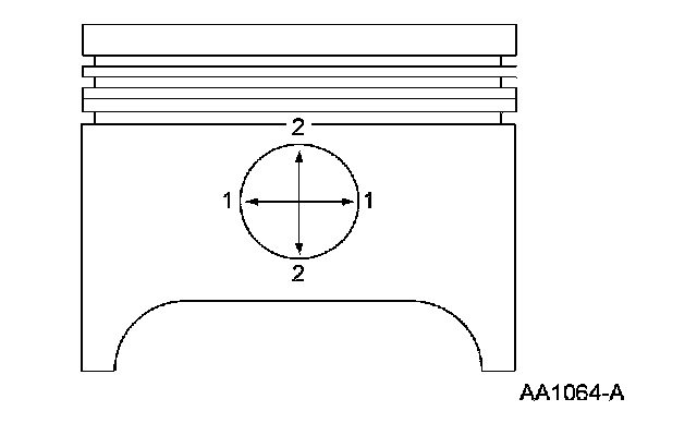 1. Measure the piston pin diameter in 2 directions at the points shown. Verify the diameter is within specification.