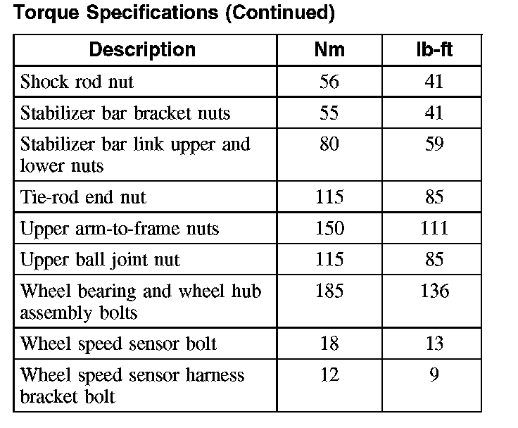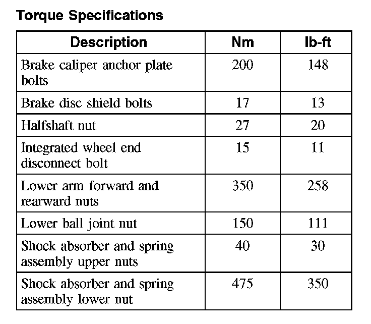 Torque Specifications: