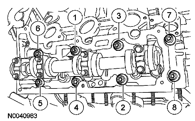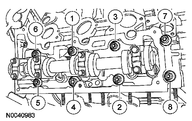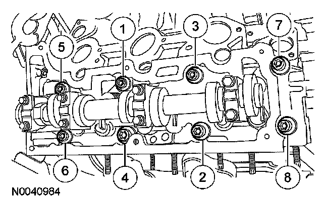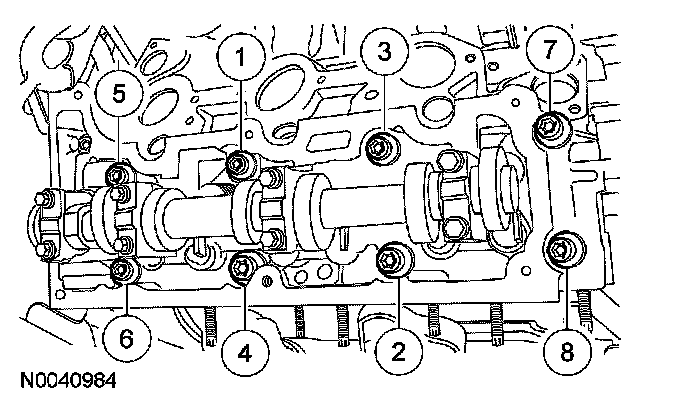 Step 1: Install 8 new 12-mm bolts and tighten in the sequence shown in 2 stages