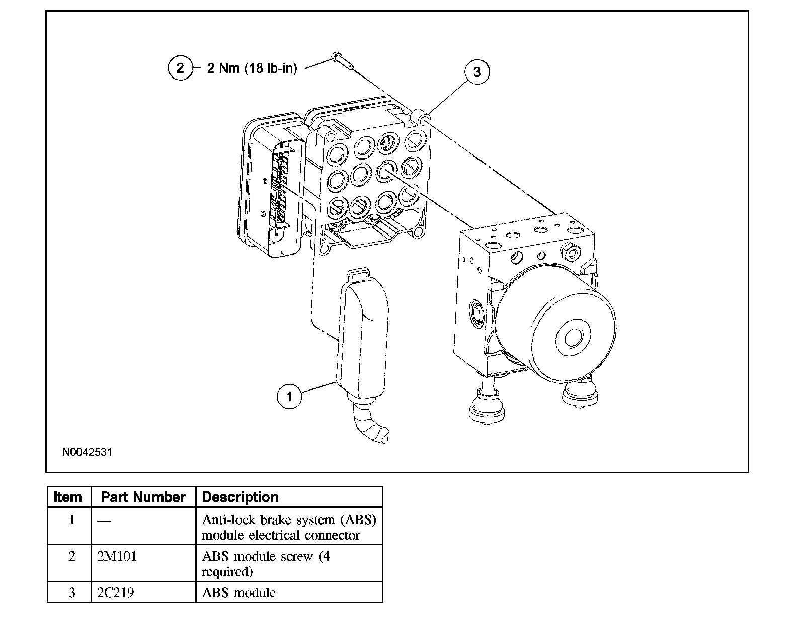 2. CAUTION: Make sure that the ABS module is properly seated to the HCU and that the torque of the ABS module screws is correct, or damage to the components can occur.