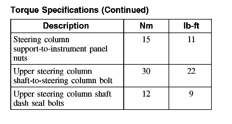 Torque Specifications (Part 1):