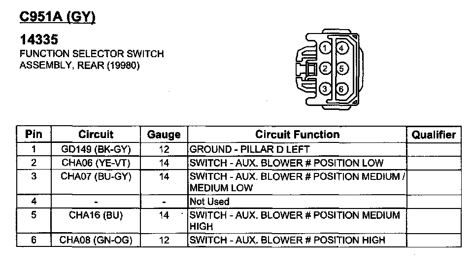 Function Selector Switch Assembly, Rear